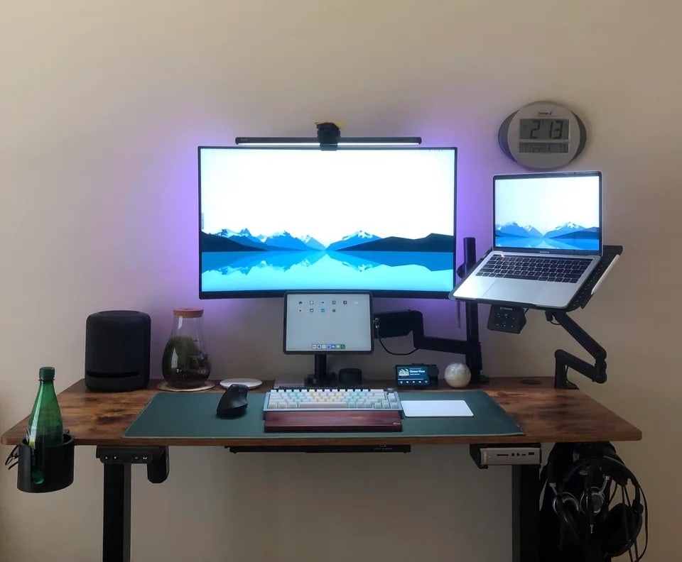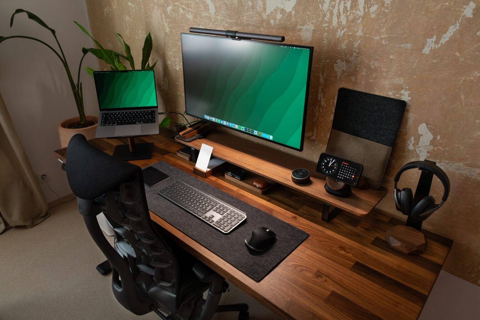 Today’s MacBook Pro setup takes full advantage of Apple audio, however, and the user couldn’t be happier. Well, except with Siri, that is. Check out their setup’s cheerful day version (above) and moody night version (below).