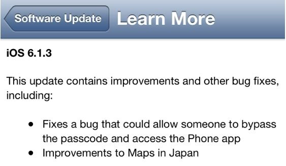 Apple just released its latest iOS 6.1.3 update, which fixes a lock screen security flaw that allows users to bypass a passcode lock. The update also makes improvements to Maps for users in Japan.