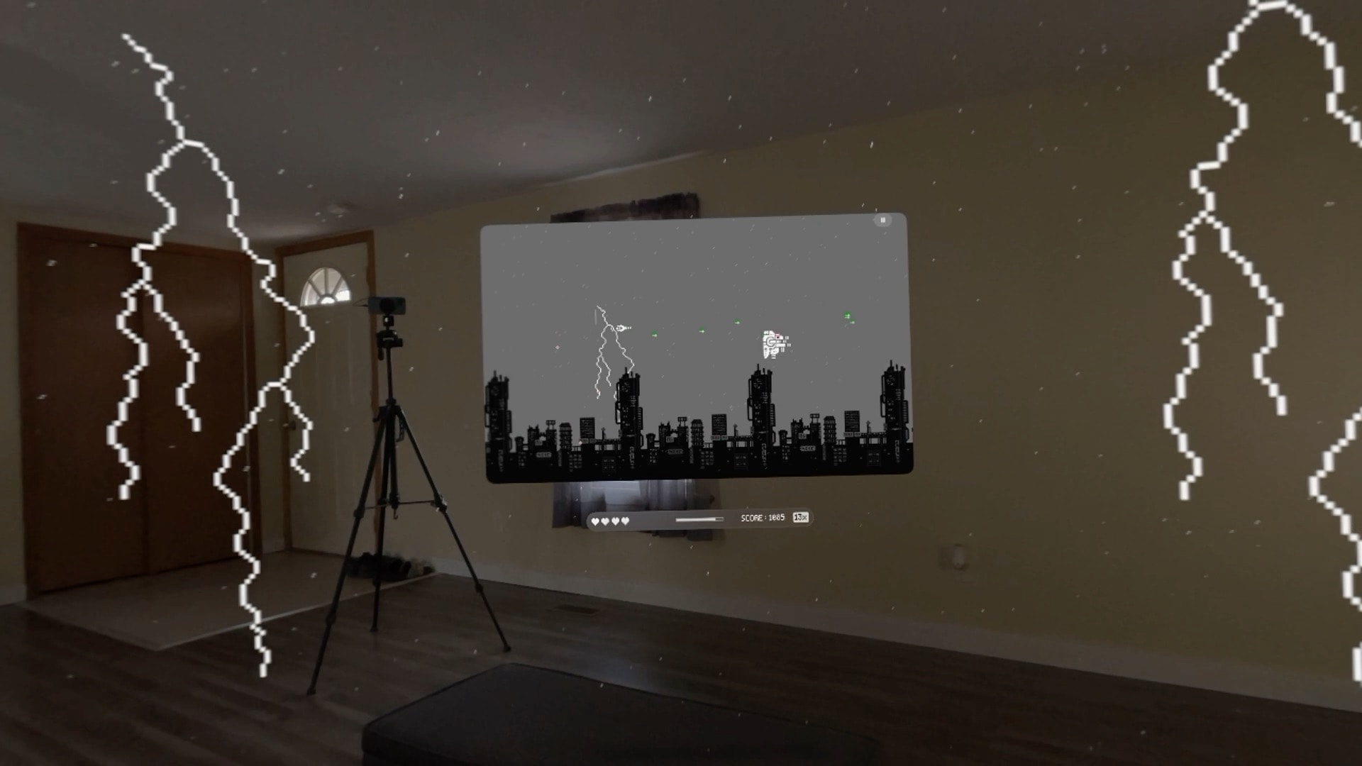 The on-screen graphics look delightful in one-bit black and white. (Red and green accents differentiate power-ups from enemy objects.) And things get wild when you play Void-X on Vision Pro. The game window floats in your room, but the graphics extend into your environment. (Read more about the experience in our post: Bullet-dodging game Void-X is a total blast on Vision Pro.) — D. Griffin Jones