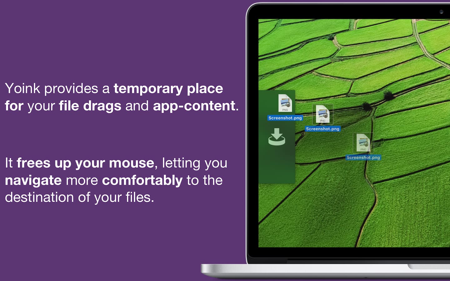 Move a lot of files around on your Mac? Check out Yoink, which adds a shelf to your Mac that you can use to temporarily hold files, photos, text snippets and more.