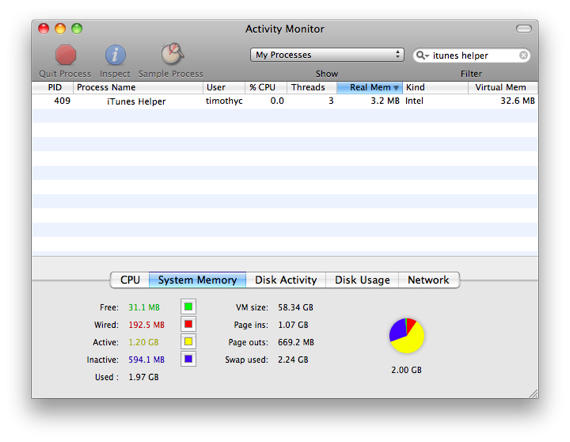 Before you do anything, quit iTunes and iTunes helper. To quit iTunes helper, open up Activity Monitor (Applications>Utilities) and type iTunes helper in the search bar. Highlight the process and click “Quit Process.” If nothing shows up when you search, you don’t have the helper running. I’m not saying this is a necessary step, I just run into less bumps when I get iTunes out of the way.