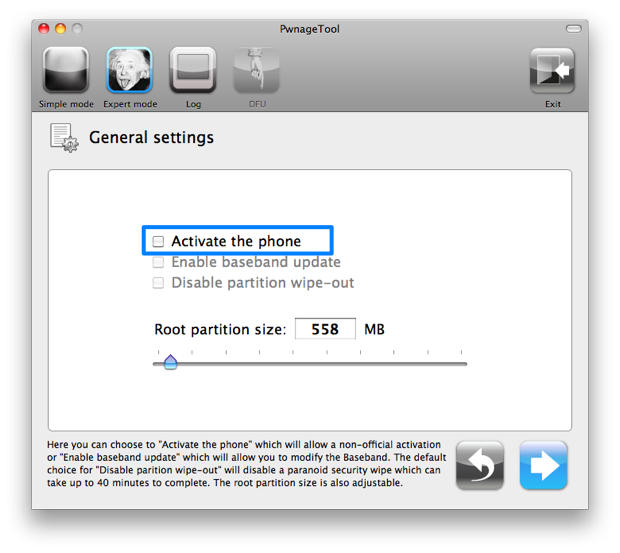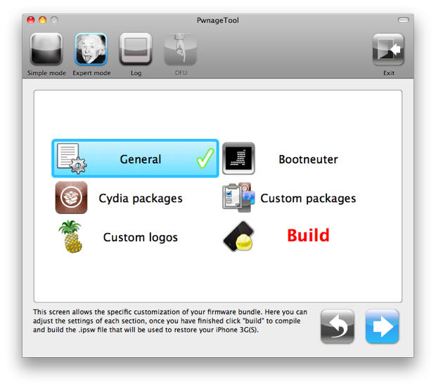 Open Pwnage Tool and make sure you’re in expert mode. Select your device and click the next button in the bottom right corner.