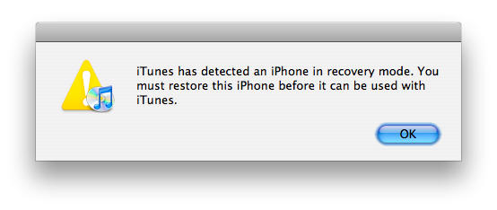 - While still holding the Home button let go of the Power button until iTunes recognizes a device that is connected in recovery mode.