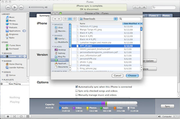 Right click and save this ATT_US.ipcc carrier settings file to your hard drive. I downloaded it to the default Downloads folder. When it has finished downloading, follow these steps: