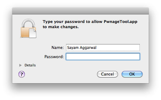 5. Now, it will being building a custom firmware file. When prompted, type your Mac’s username and password and click ‘OK’.