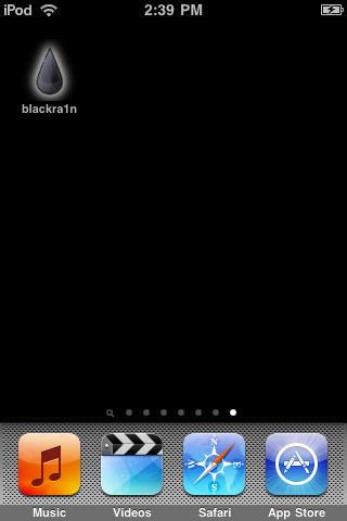 6. Navigate to the last page of the device’s springboard and open the blackra1n app.