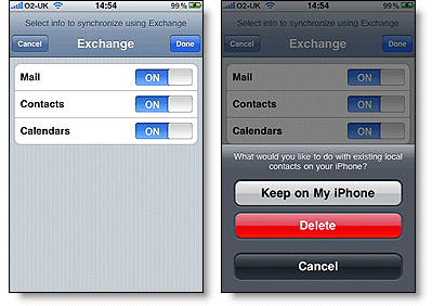 13. Unless you want to delete all the existing Contacts and Calendars on your phone, select the Keep on my iPhone option when prompted. This will also allow you to keep syncing with your computer via iTunes.