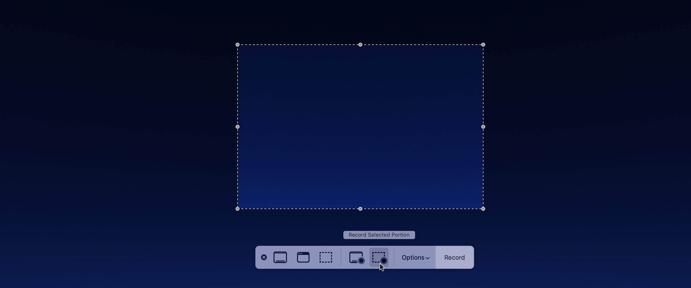 Capture a segment of your Mac screen: To capture a specific portion of the screen, select the third mode from the left. Then move and/or resize the box that appears to highlight the area of the screen you want to take a screenshot of. Finally, press Capture.