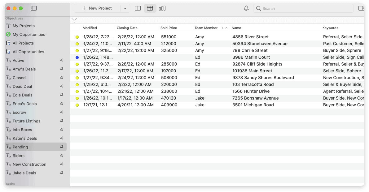 Breanne and her team use Daylite’s smart lists to keep track of multiple projects/properties from different team members.