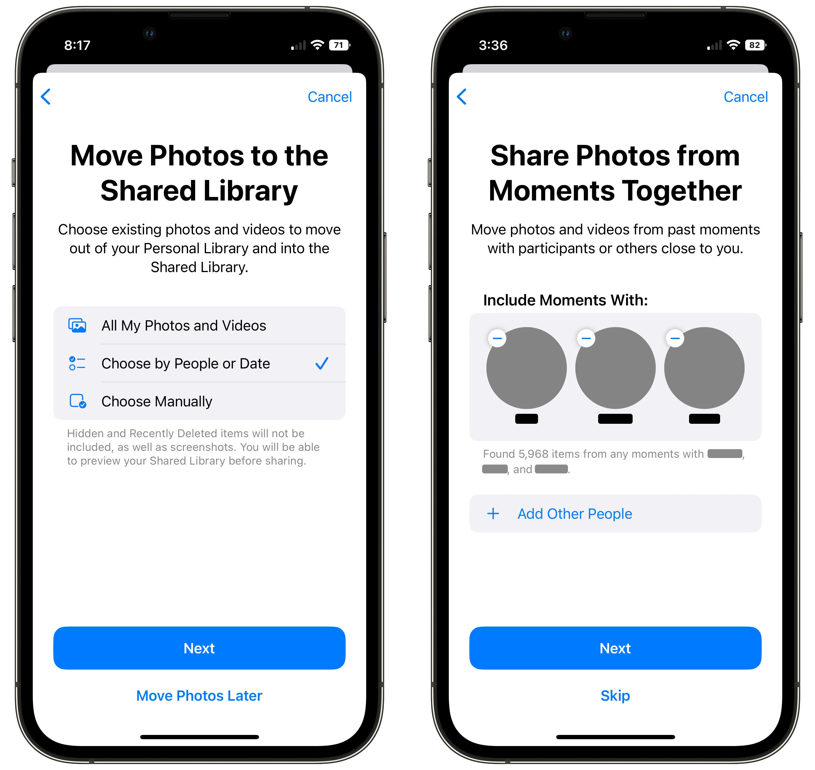 If you chose to share photos of specific people, tap Add Other People to pick some of your mutual friends and family. You may be asked to identify whether some photos in your library are of the people you selected or not. Tap Skip if you don’t want to share pictures this way.