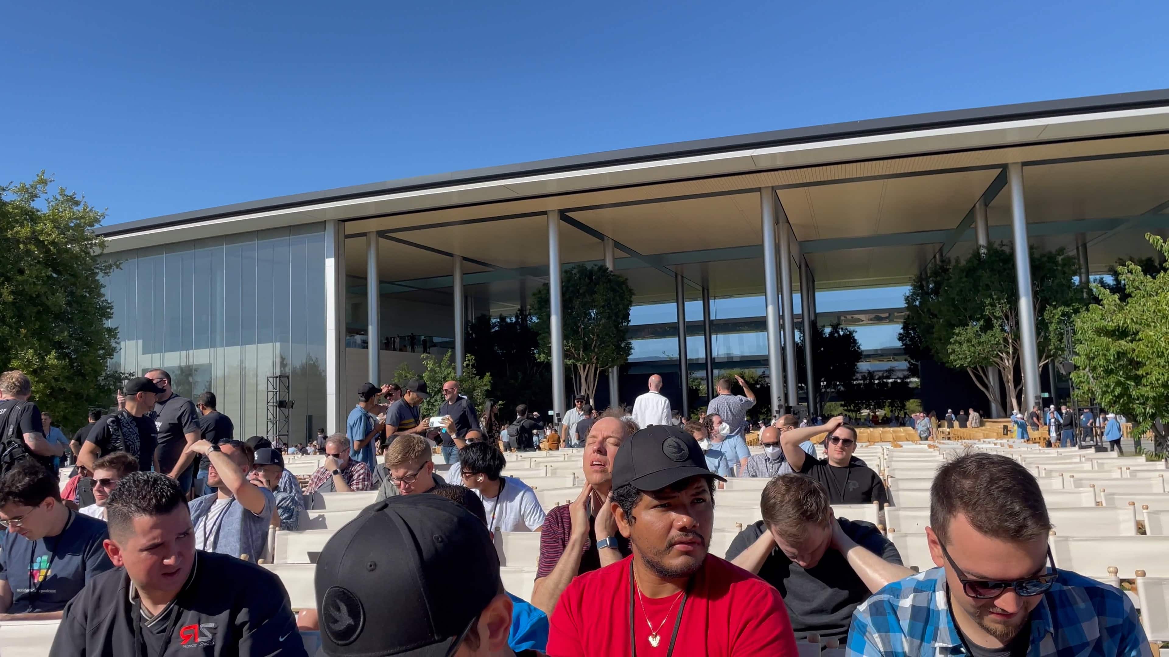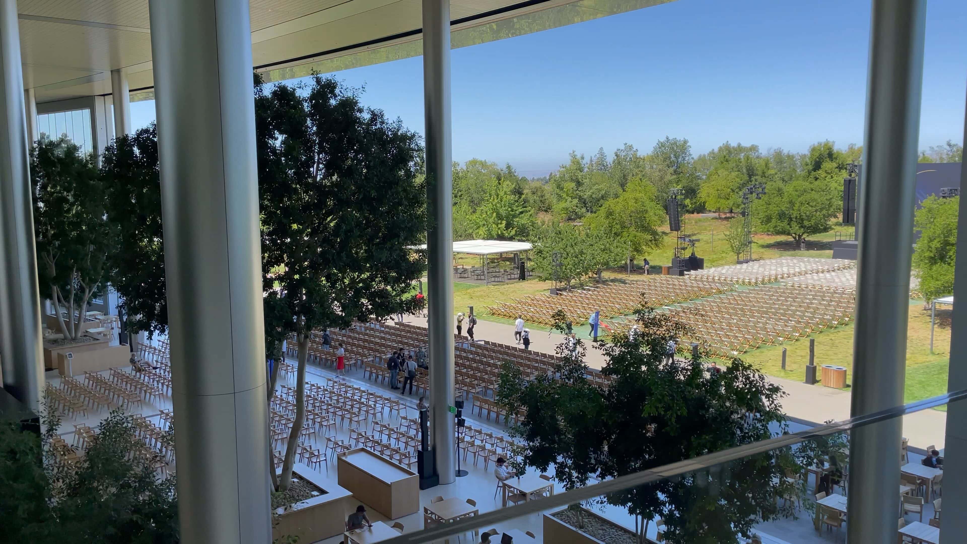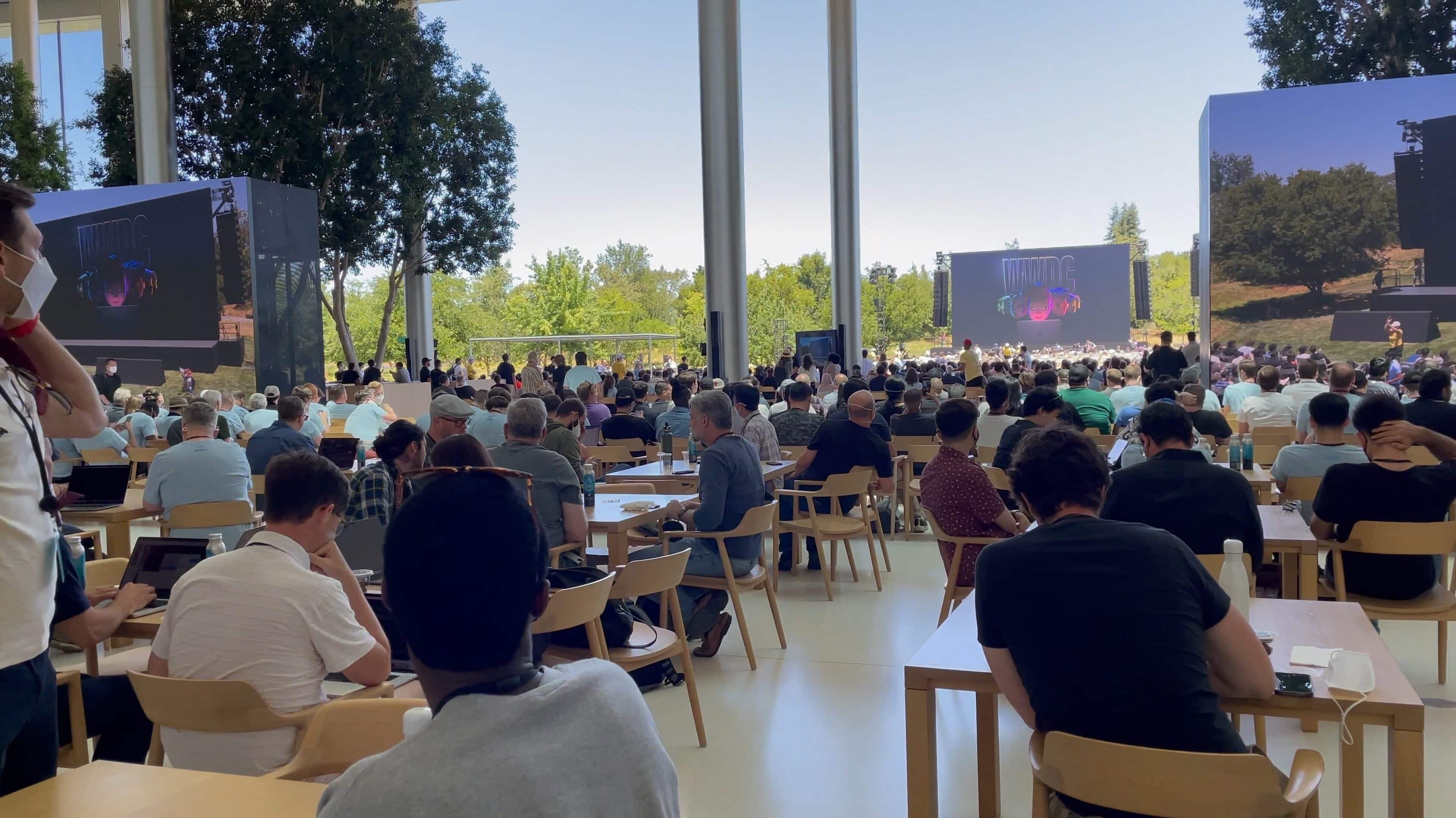 Previously, members of the media had been escorted to the Steve Jobs Theater for press events, which is another building off to the side of the sprawling Apple Park campus. However, the theater would have been much too small to fit the 1,000 developers, 350 students and hundreds of employees attending the WWDC22 keynote viewing party.