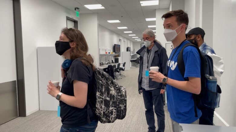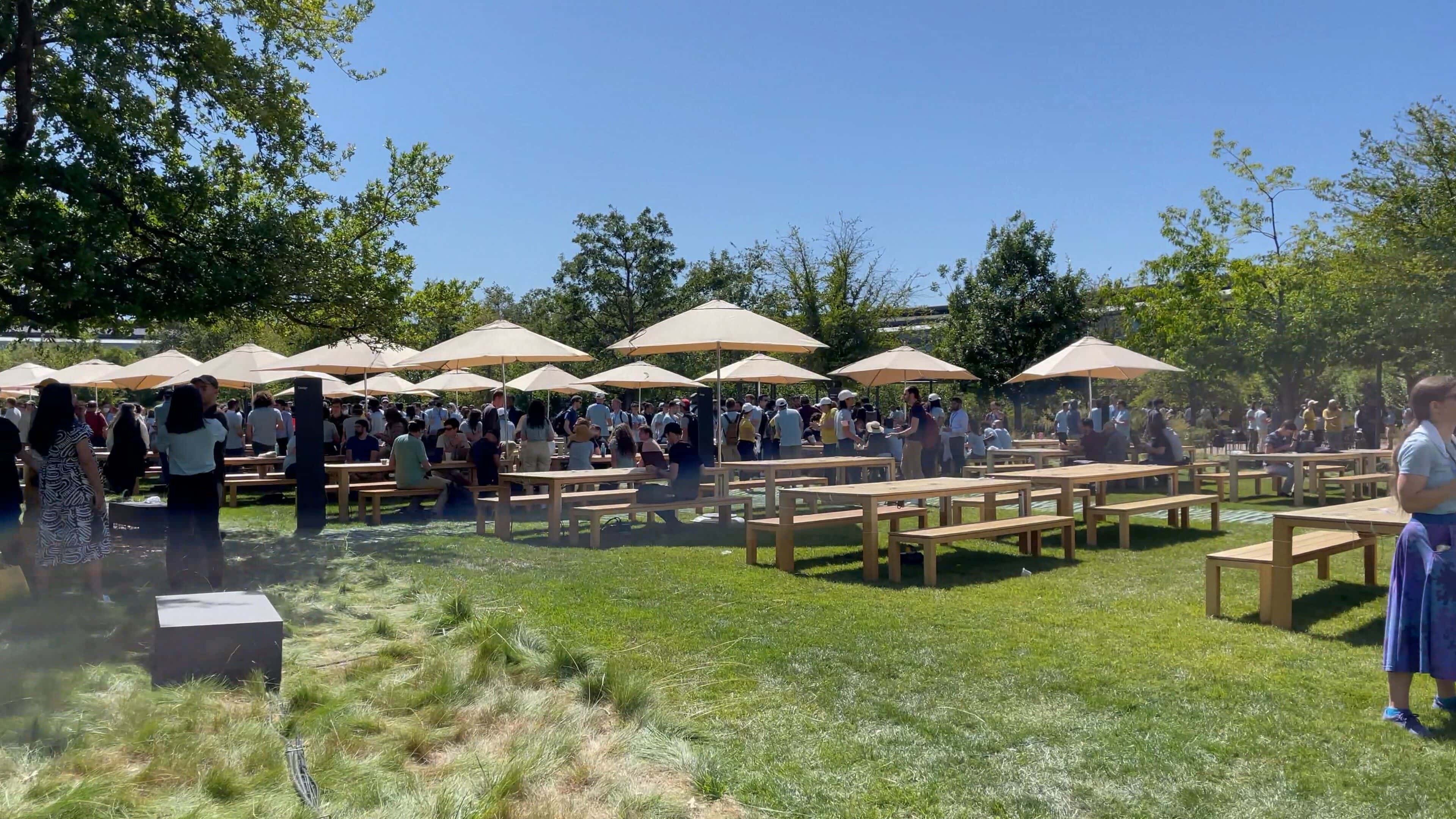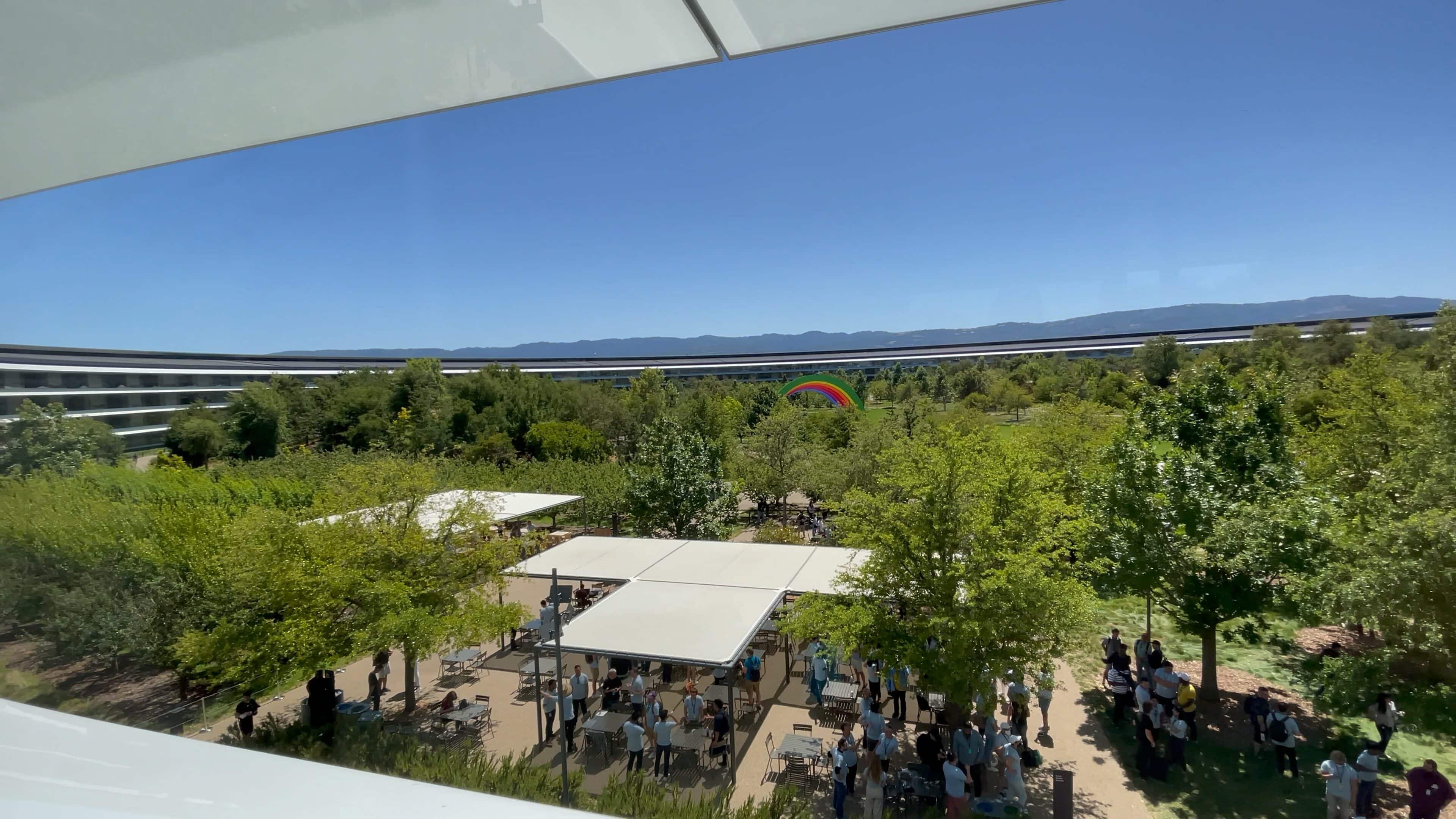 Previously, members of the media had been escorted to the Steve Jobs Theater for press events, which is another building off to the side of the sprawling Apple Park campus. However, the theater would have been much too small to fit the 1,000 developers, 350 students and hundreds of employees attending the WWDC22 keynote viewing party.