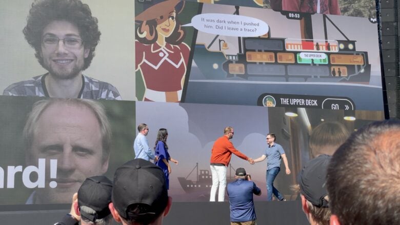 Ducks have moved into the pond in the Apple Park courtyard. They have been known to peck at the builgind’s glass walls and doors. This sign warns you to take caution when opening a door so you don’t accidentally smack a duckling. I did not see any ducks at the WWDC22 event. Photo: D. Griffin Jones/Cult of MacThe Rainbow Stage, not included in the original Apple Park design, is now an iconic element of the courtyard. It was constructed for a Lady Gaga concert and has never been taken down. Photo: D. Griffin Jones/Cult of MacView of the Ring from the courtyard. Photo: D. Griffin Jones/Cult of MacClose-up of the glass sunshades that encircle the main Apple Park building. They reduce the direct sunlight entering the building so effectively that air conditioning only runs 20% of the year, despite the year-round California sun. Photo: D. Griffin Jones/Cult of MacDetail of the granite light fixtures that line the Apple Park walkways. Photo: D. Griffin Jones/Cult of MacThe combined trash and recycling bins are made of wood to blend in more naturally with the Apple Park environment. Photo: D. Griffin Jones/Cult of MacThese canopies provide some much-needed shade. Photo: D. Griffin Jones/Cult of MacView of the Apple Park cafeteria. Photo: D. Griffin Jones/Cult of MacFrosted glass obscures the Apple Park elevators. Photo: D. Griffin Jones/Cult of MacThese refrigerated shelves in the walls are always kept perfectly stocked with beverages. Photo: D. Griffin Jones/Cult of MacA food bar, currently empty because lunch is well over. Photo: D. Griffin Jones/Cult of MacView of the seating in Caffè Macs between WWDC22 events. Photo: D. Griffin Jones/Cult of MacView of one of Apple Park’s 50-foot by 90-foot sliding glass doors. These doors open in just eight minutes and operate in total silence. Photo: D. Griffin Jones/Cult of MacLooking back through the doors from outside. Photo: D. Griffin Jones/Cult of MacLooking down the outside seating aisle toward the stage. Photo: D. Griffin Jones/Cult of MacThese chairs are lined up in the rear of the outdoor seating. Photo: D. Griffin Jones/Cult of MacTwo cameras flanked both sides of the audience during the WWDC22 keynote. They channeled video feeds of the stage back to the screens inside the Ring. They were also used to live-stream the Apple Design Awards. Photo: D. Griffin Jones/Cult of MacThe Apple Design Awards are about to begin. Photo: D. Griffin Jones/Cult of MacEvangelist Linda Dong joins SVP of Design Alan Dye onstage to introduce the 2022 Apple Design Awards finalists. Photo: D. Griffin Jones/Cult of MacDevelopers of the Apple Design Awards finalists who were in attendance were asked to stand. Photo: D. Griffin Jones/Cult of MacApple Design Awards winners received their awards, shook hands and posed for press photos. Photo: D. Griffin Jones/Cult of MacLinda Dong announced the Apple Design Awards winners with great enthusiasm. Photo: D. Griffin Jones/Cult of MacThe Apple Design Awards were the final event of the day. Photo: D. Griffin Jones/Cult of MacWWDC22 attendees were asked politely, yet firmly, to leave. Photo: D. Griffin Jones/Cult of Mac