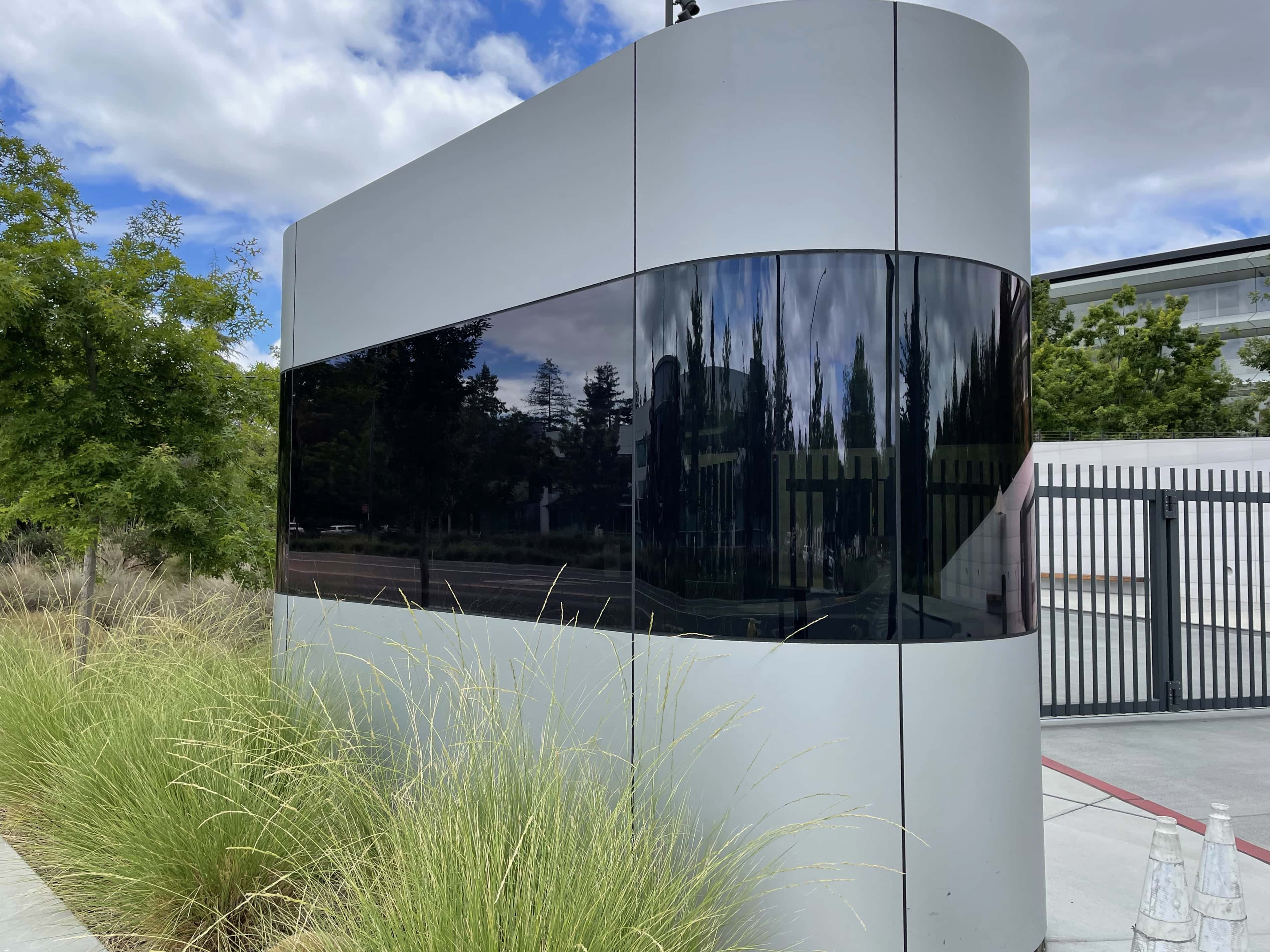 View of Apple Park from the sidewalk. Photo: D. Griffin Jones/Cult of MacThe security pod outside an Apple Park gate. Photo: D. Griffin Jones/Cult of Mac